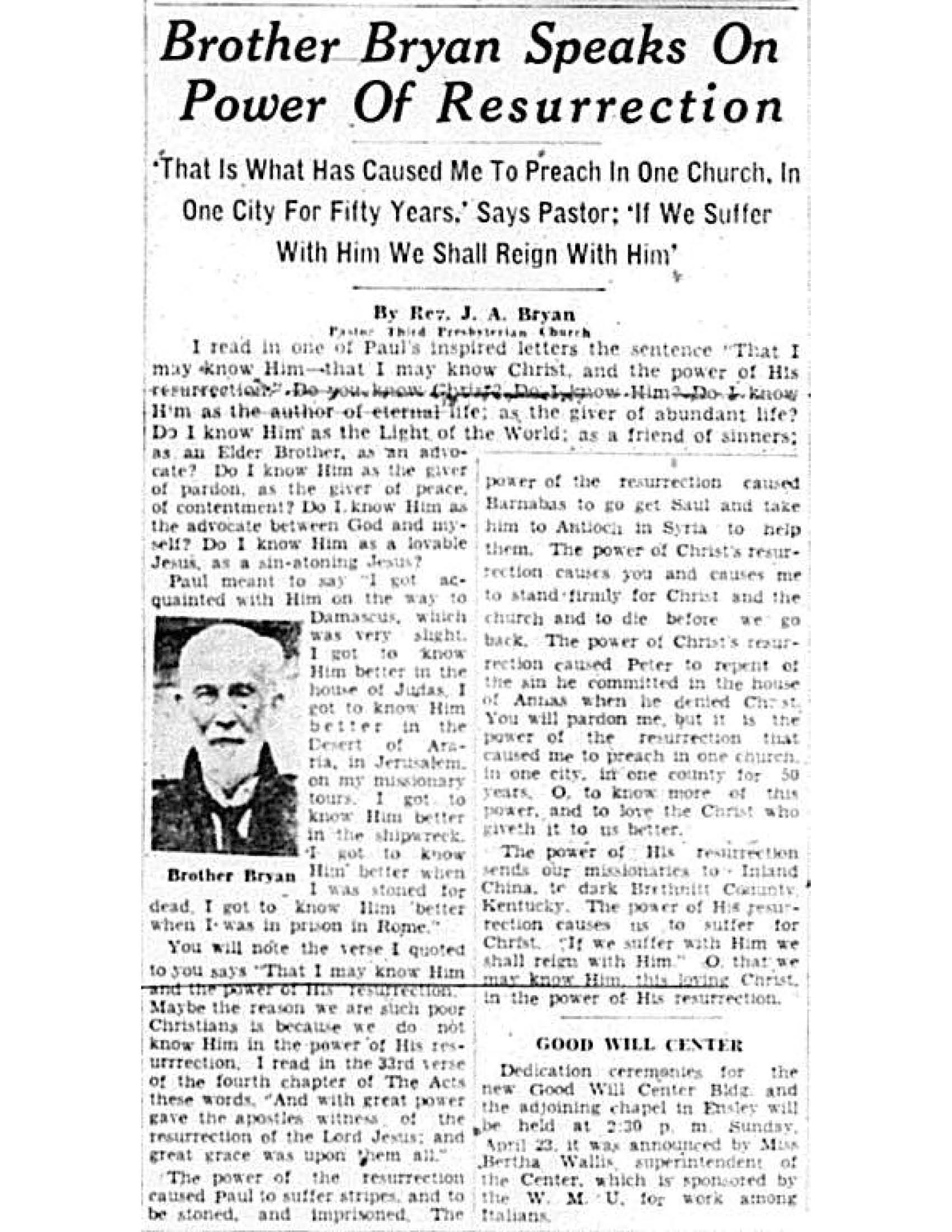 Birmingham Post-Herald | April 15, 1939 Brother Bryan Speaks on Power of Resurrection