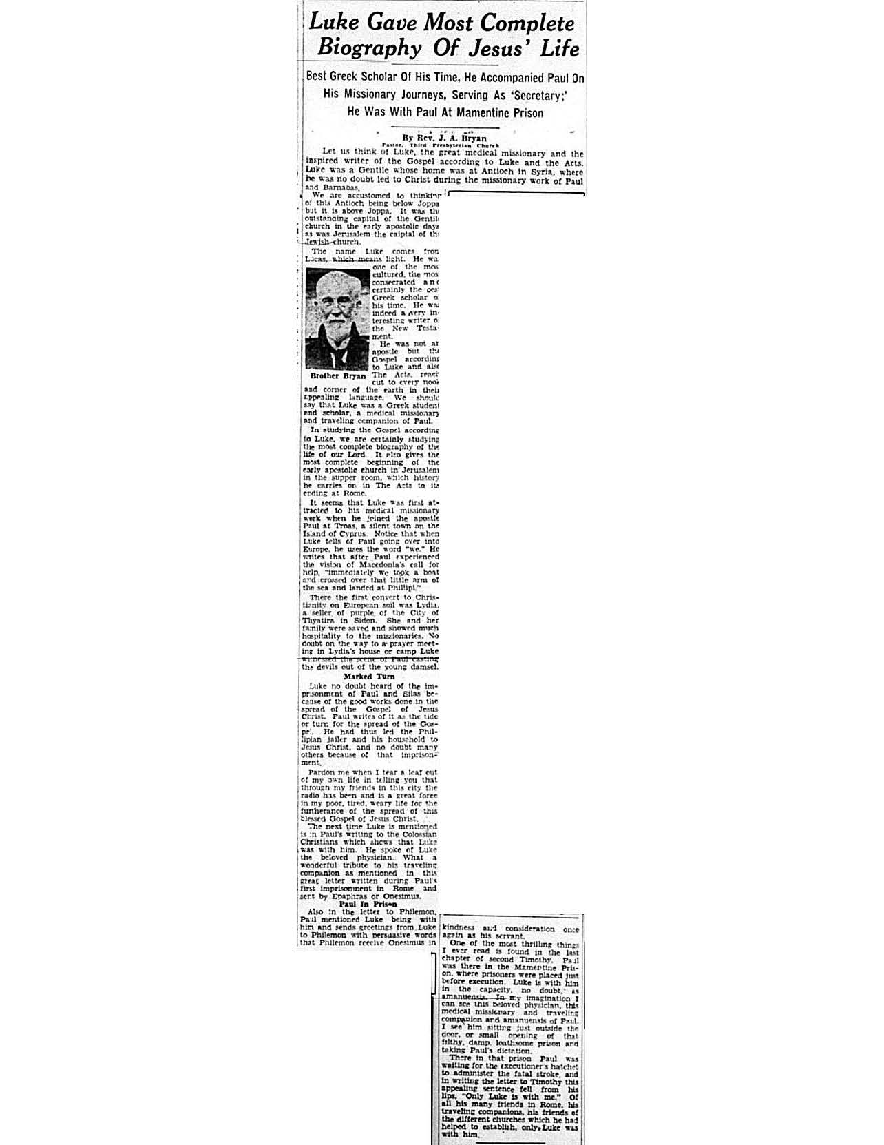 Birmingham Post-Herald | April 29, 1939 Luke Gave Most Complete Biography of Jesus’ Life