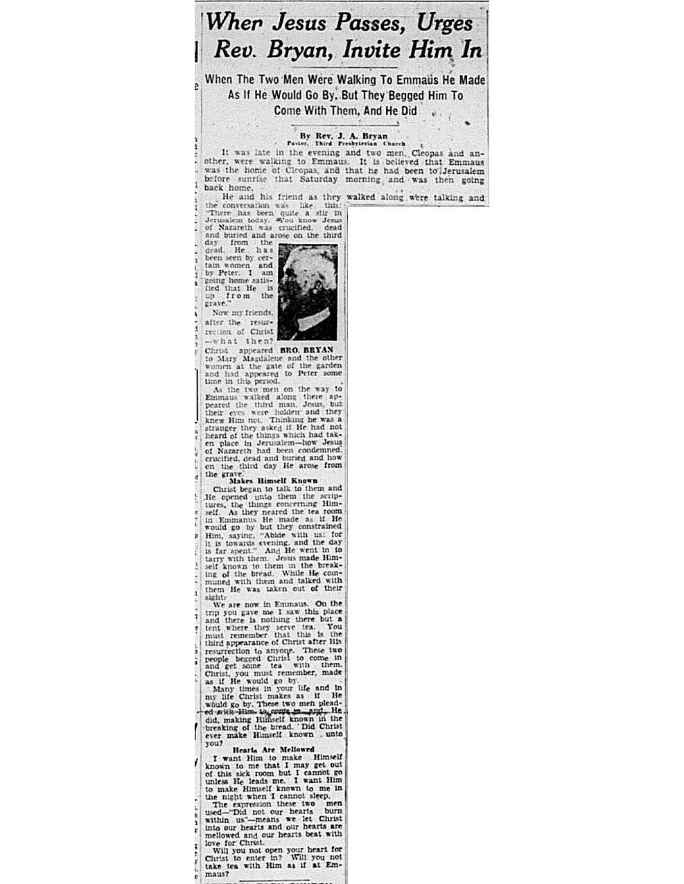 Birmingham Post-Herald | April 30, 1938 When Jesus Passes, Invite Him In Notes: