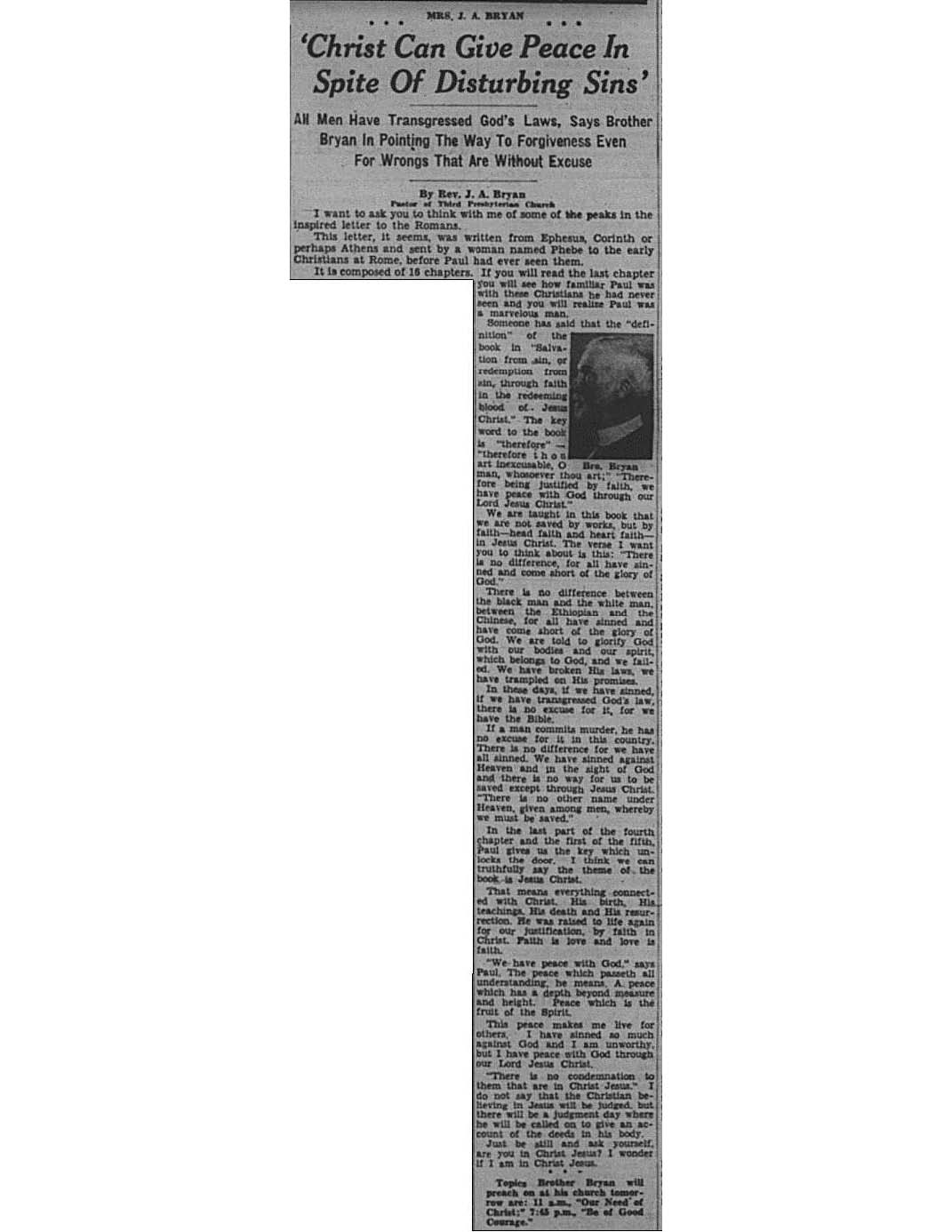 Birmingham Post-Herald | August 1, 1936 Christ Can Give Peace In Spite of Disturbing Sins’