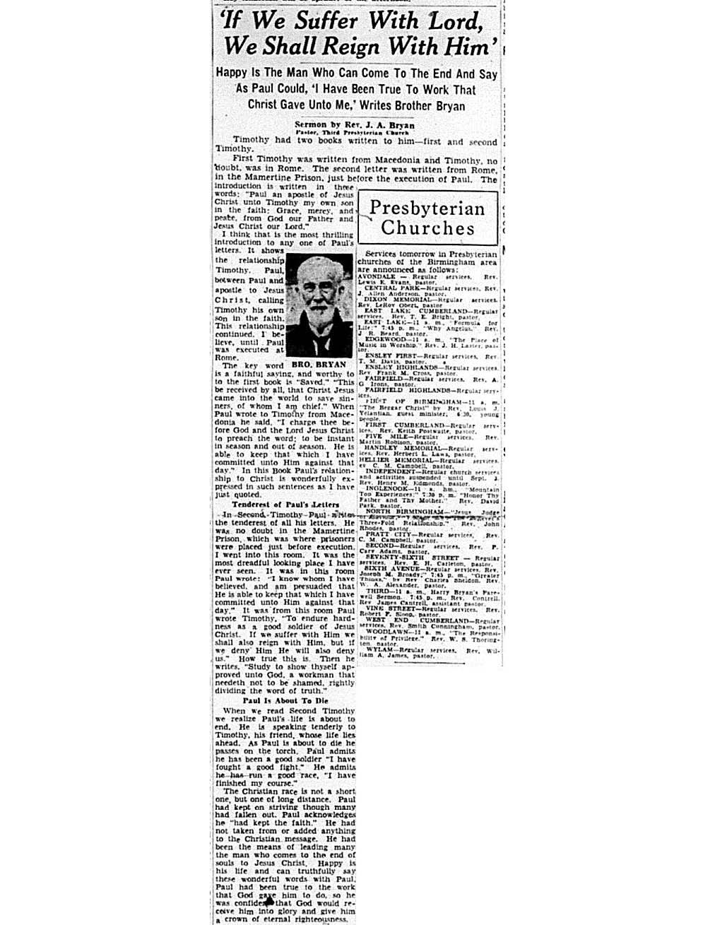 Birmingham Post-Herald | August 19, 1939 “‘If We Suffer With Lord, We Shall Reign With Him'” Notes: