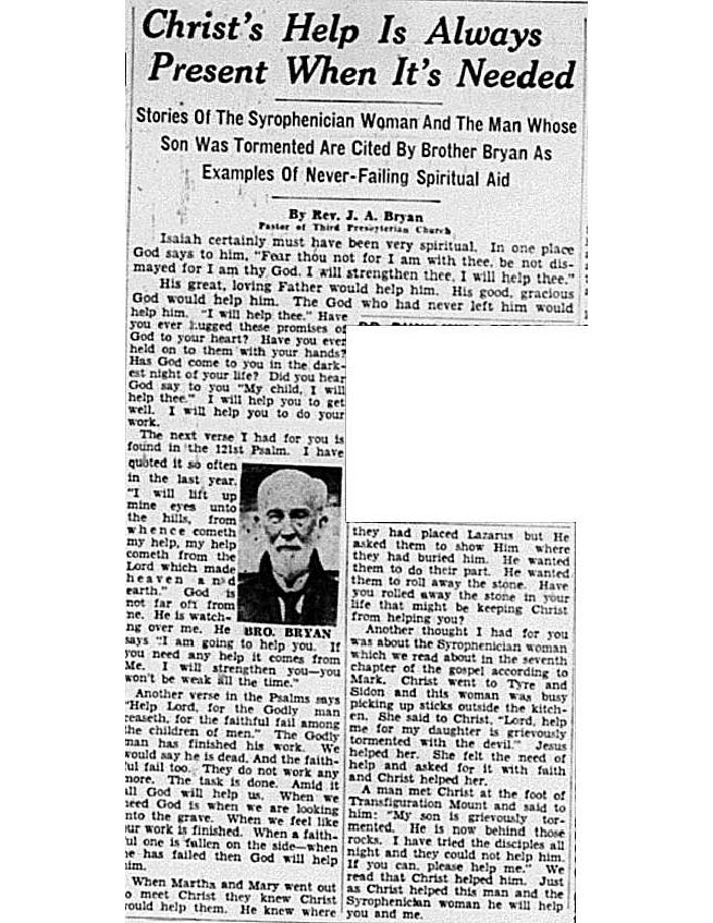 Birmingham Post-Herald | August 27, 1938 Christ’s Help Is Always Present When It’s Needed