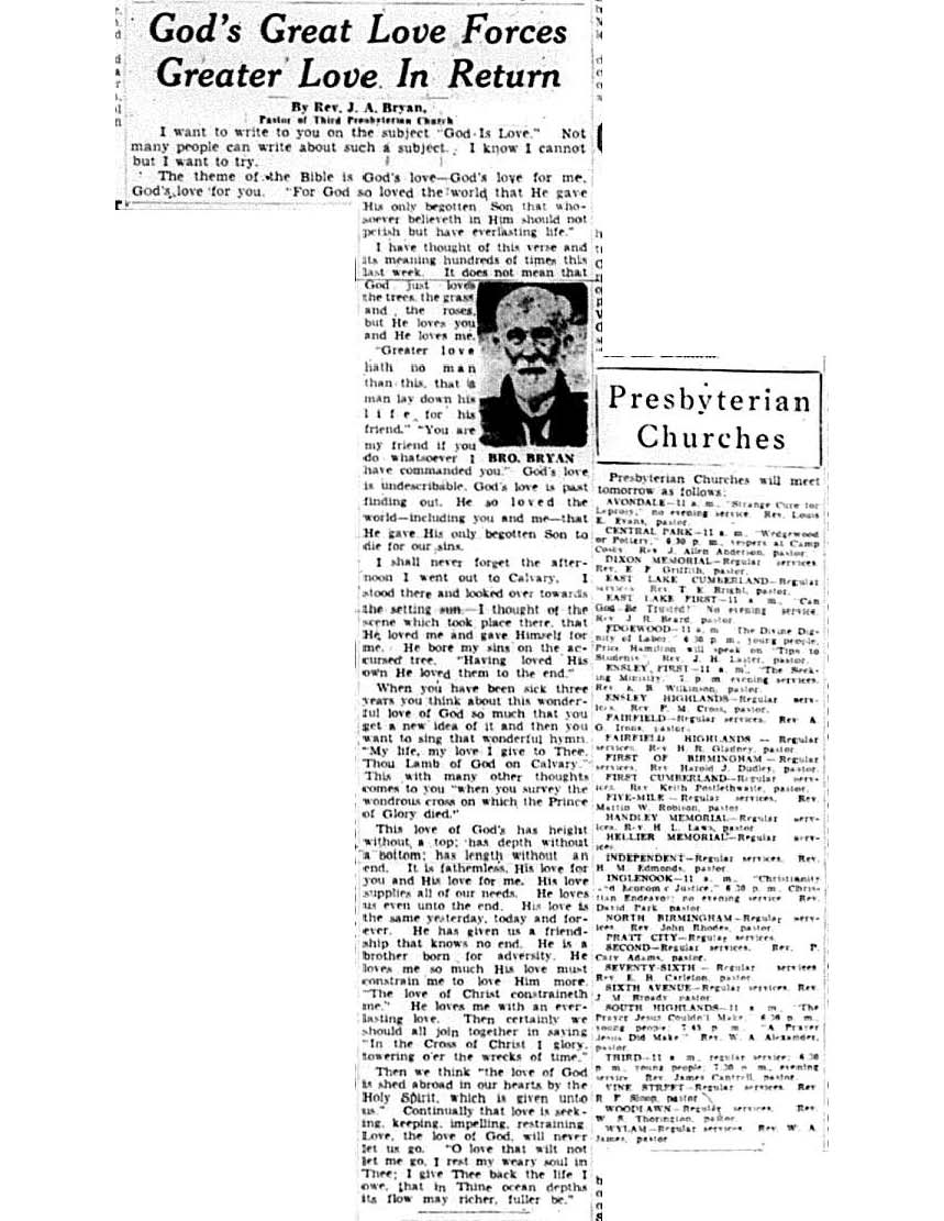 Birmingham Post-Herald | August 31, 1940 God’s Great Love Forces Greater Love In Return