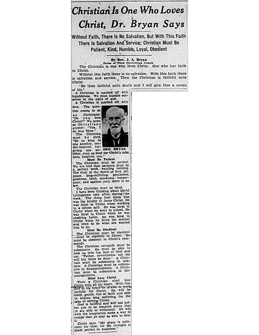 Birmingham Post-Herald | August 6, 1938 Christian Is One Who Loves Christ
