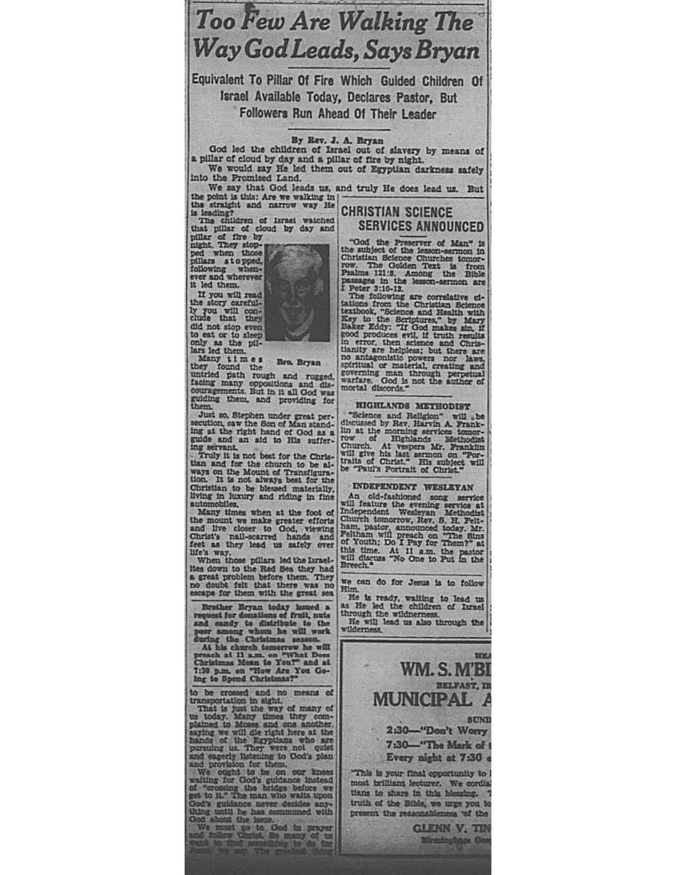 Birmingham Post-Herald | December 14, 1935 Too Few Are Walking The Way God Leads Notes: