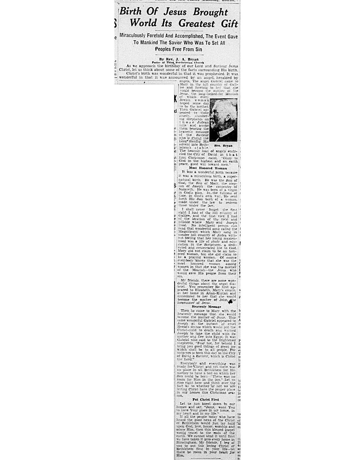 Birmingham Post-Herald | December 18, 1937 Birth of Jesus Brought World Its Greatest Gift Notes: