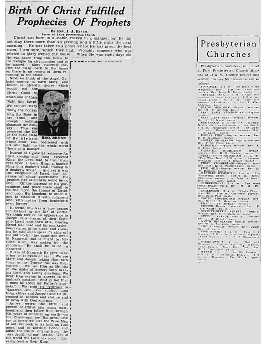 Birmingham Post-Herald | December 21, 1940 Birth of Christ Fulfilled Prophecies of Prophets Notes: