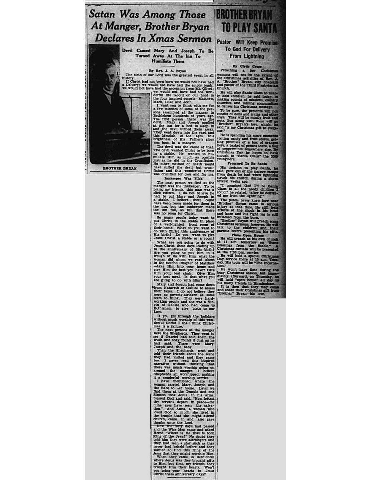 Birmingham Post-Herald | December 22, 1934 Satan Was Among Those At Manger