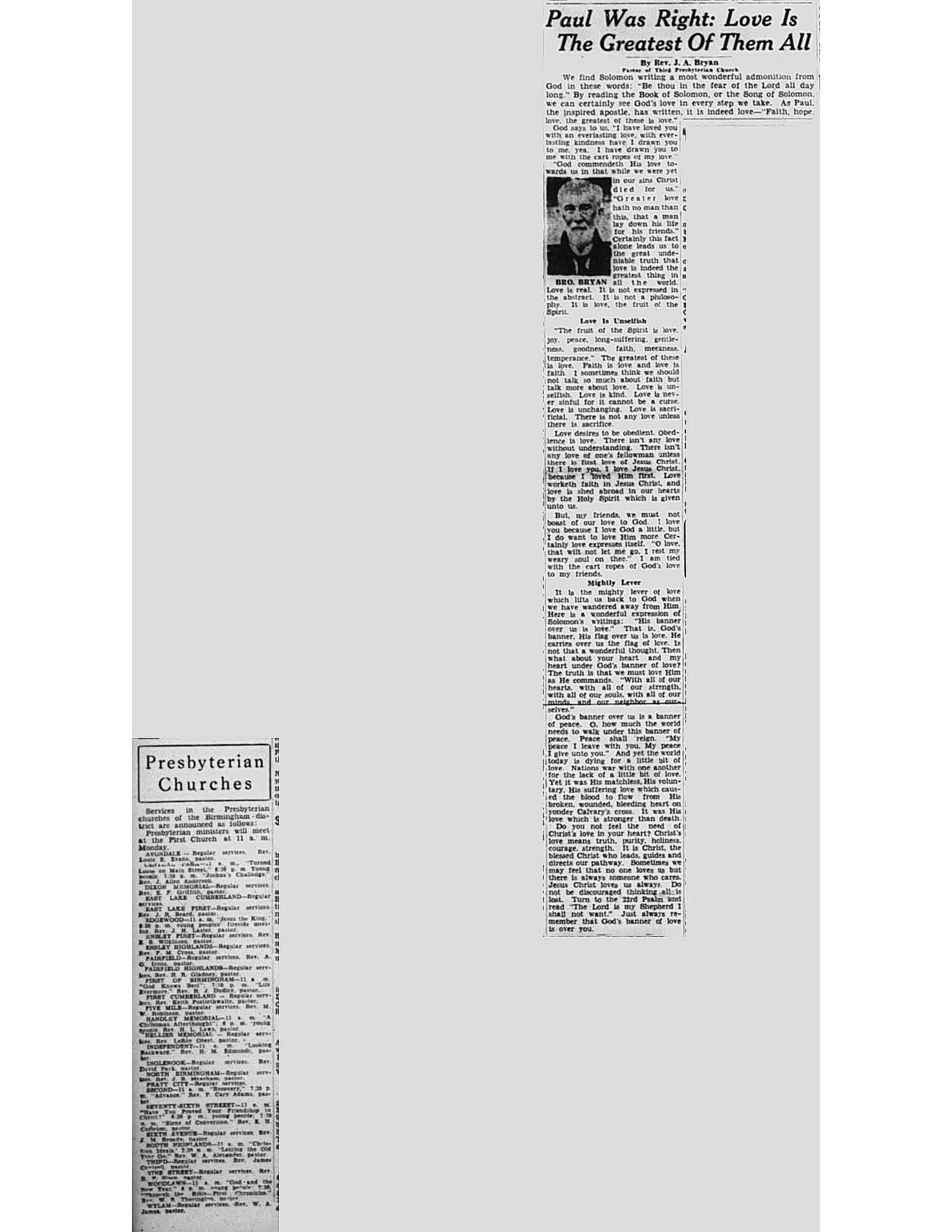 Birmingham Post-Herald | December 28, 1940 Paul Was Right: Love Is The Greatest of Them All Notes: