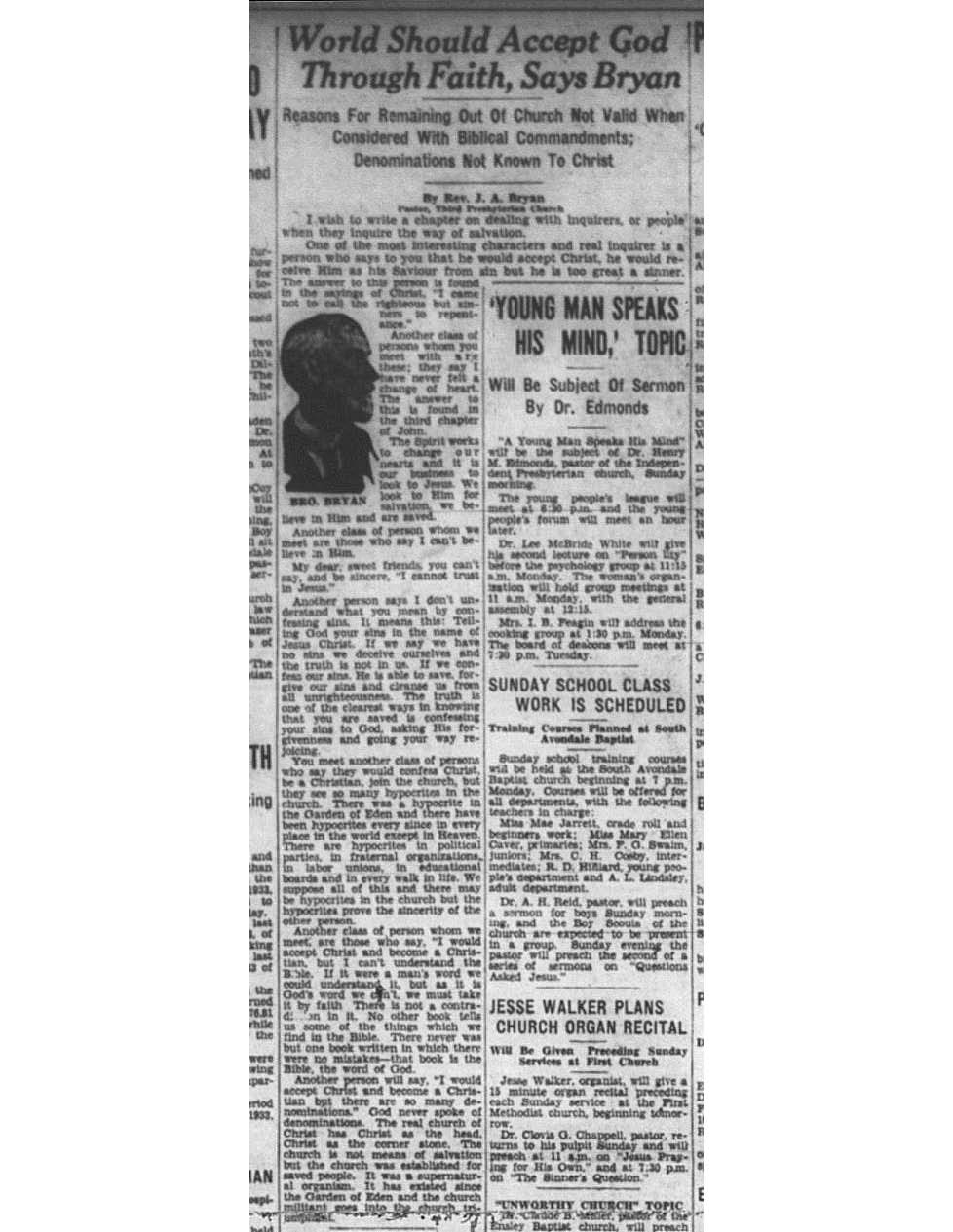 Birmingham Post-Herald | February 10, 1934 World Should Accept God Through Faith Notes: