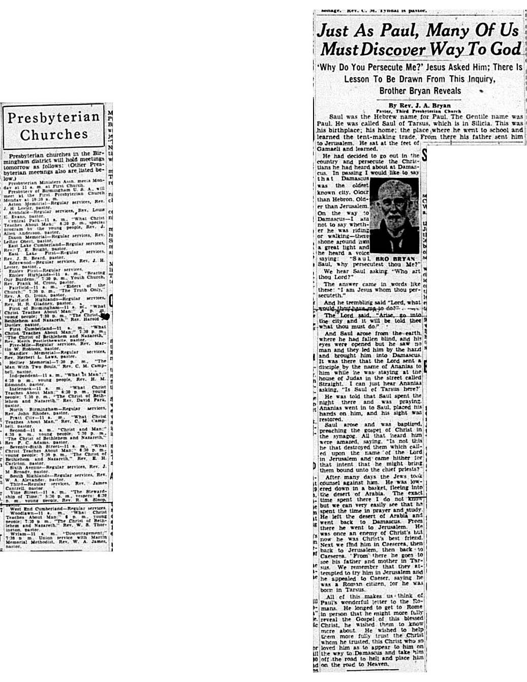 Birmingham Post-Herald | February 10, 1940 “Just As Paul, Many of Us Must Discover Way To God”
