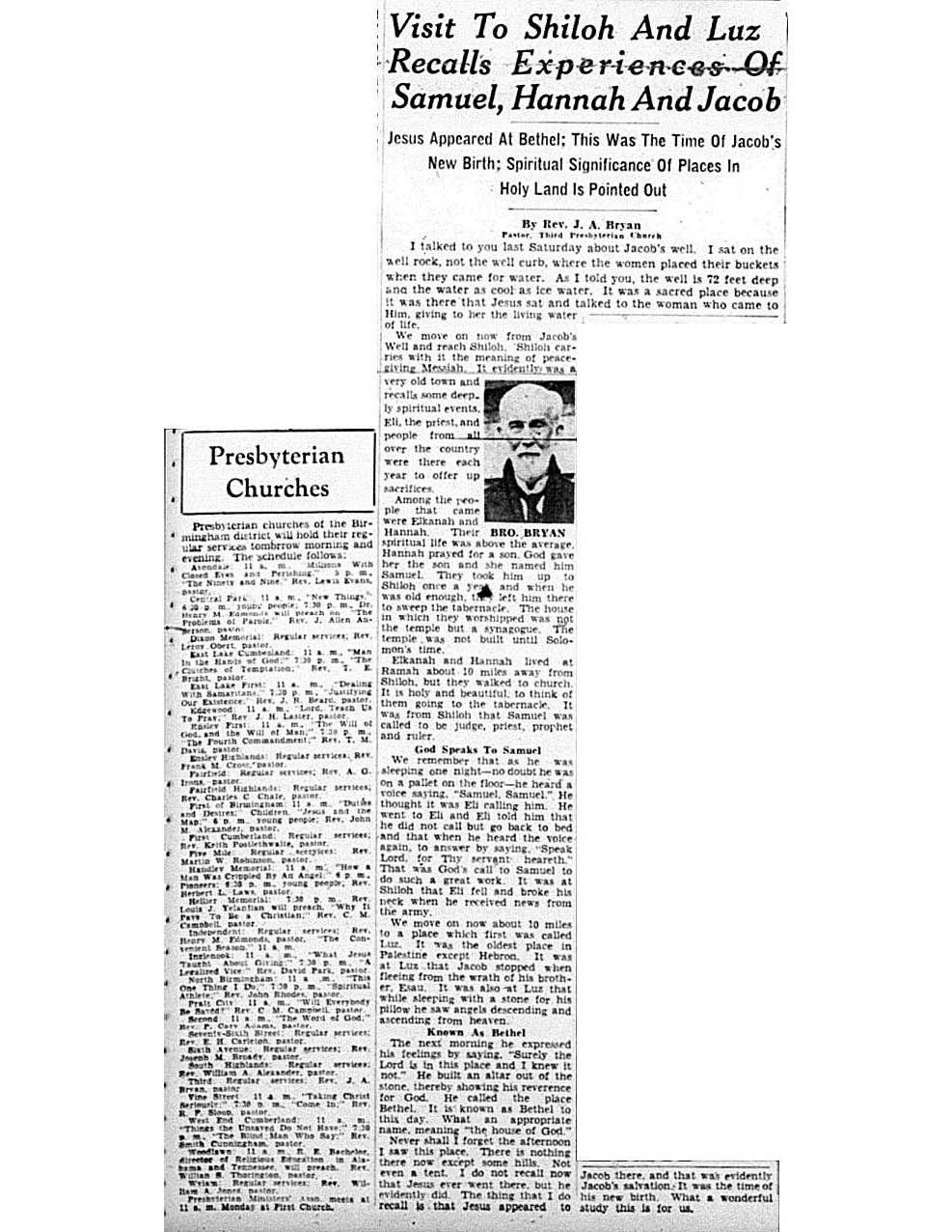 Birmingham Post-Herald | February 11, 1939 “Visit To Shiloh and Luz Recalls Experiences of Samuel, Hannah and Jacob” Notes: