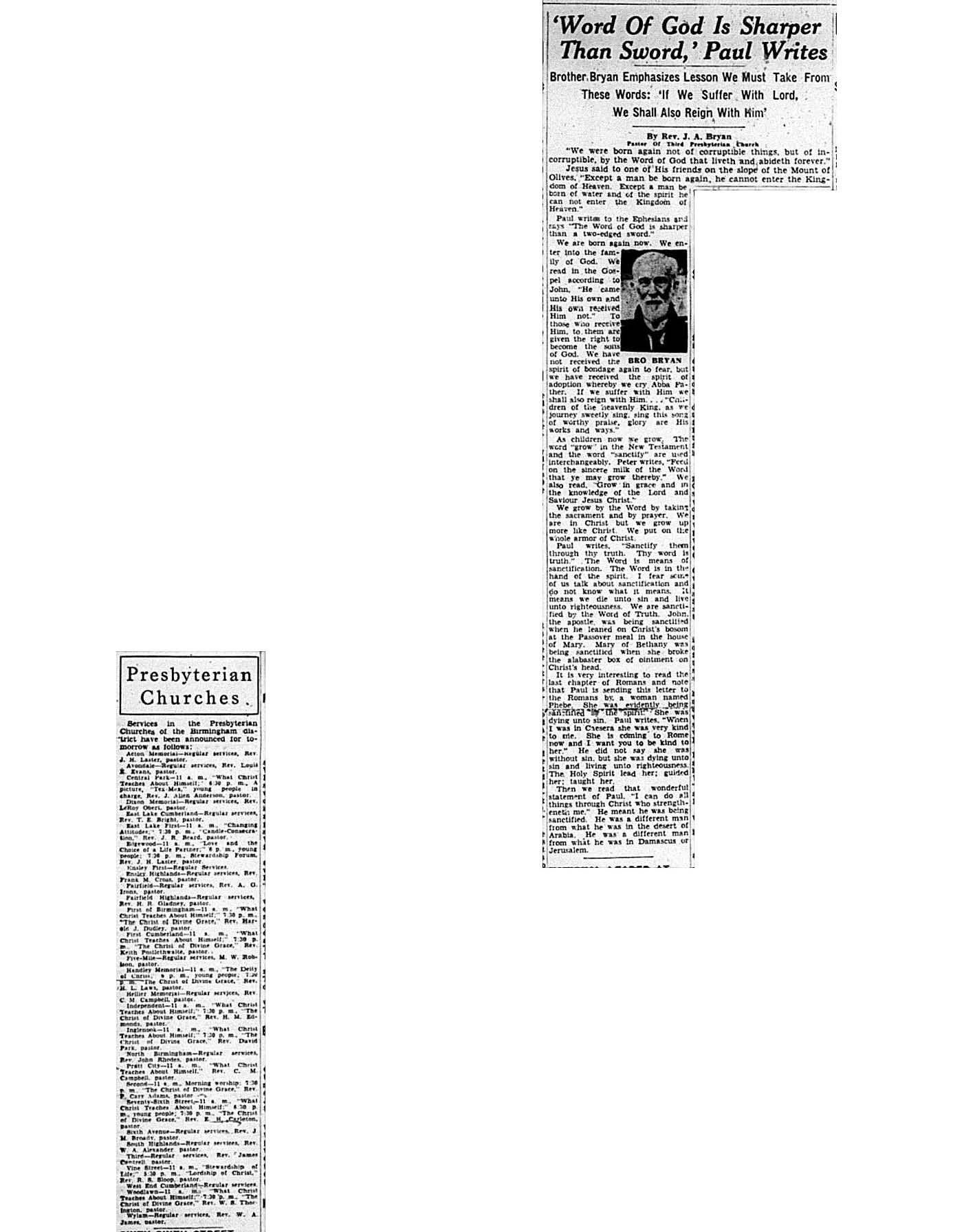 Birmingham Post-Herald | February 17, 1940 Word Of God Is Sharper Than Sword’Paul Writes Notes: