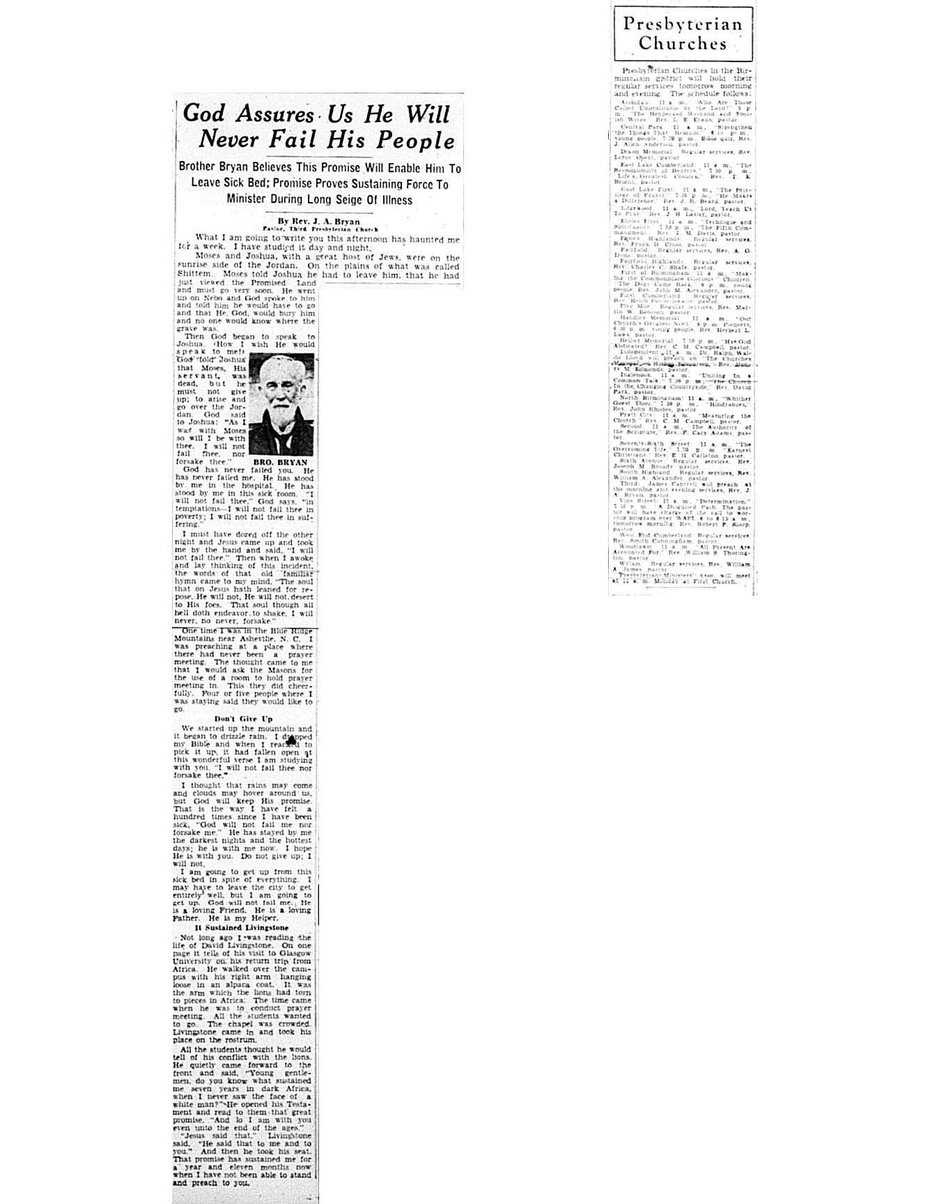 Birmingham Post-Herald | February 18, 1939 God Assures Us He Will Never Fail His People