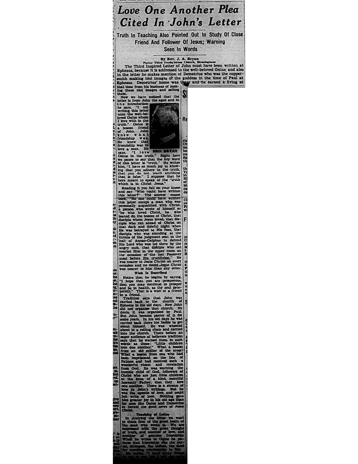 Birmingham Post-Herald | February 20, 1937 Love One Another Plea Cited in John’s Letter Notes: