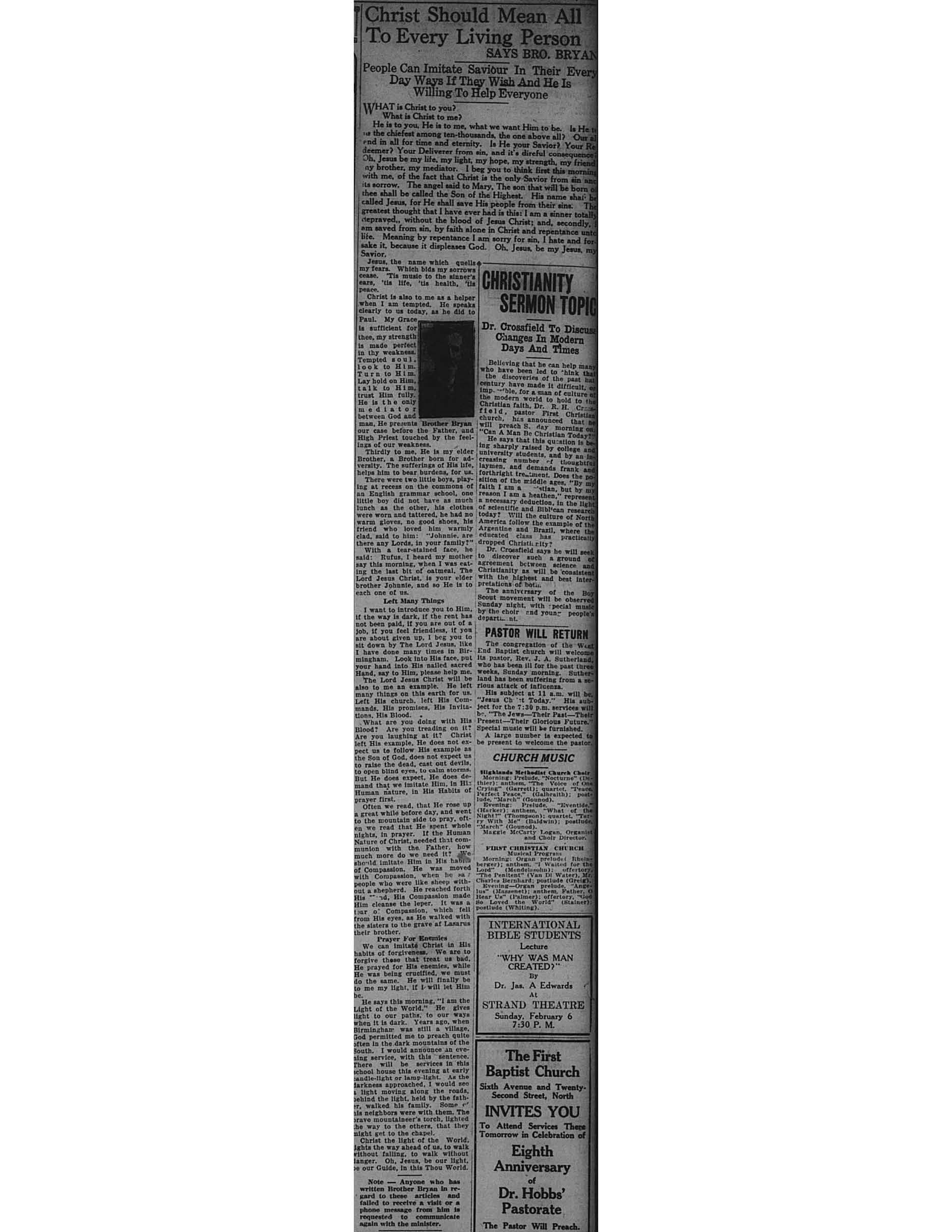 Birmingham Post-Herald | February 5, 1927 Christ Should Mean More To Every Living Person Notes: