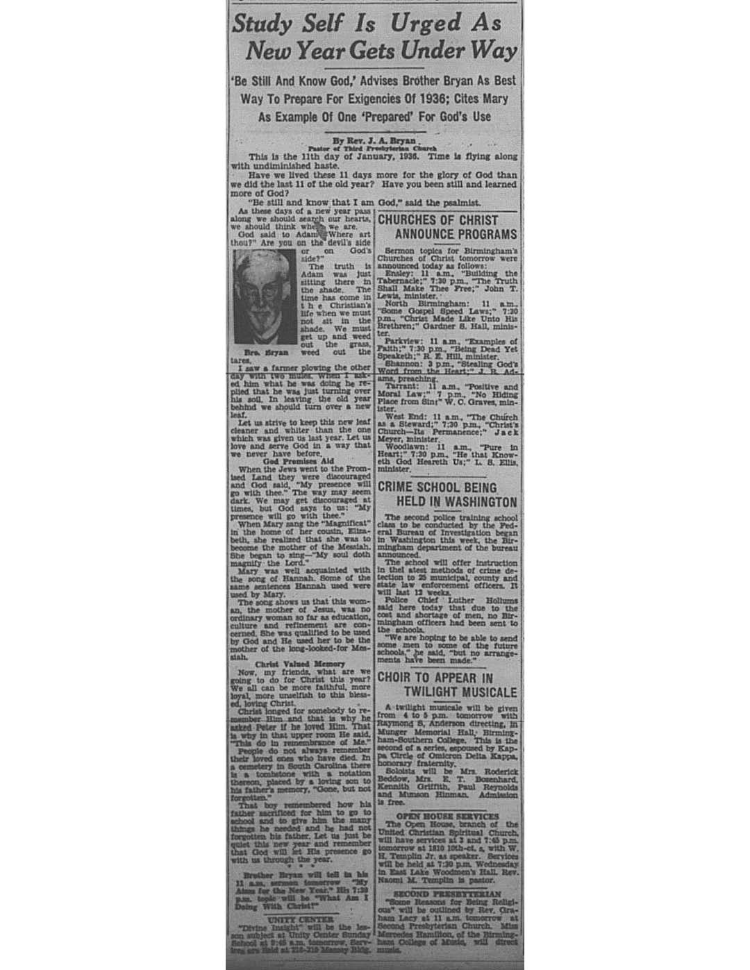 Birmingham Post-Herald | January 11, 1936 Study Self Is Urged As New Year Gets Under Way Notes: