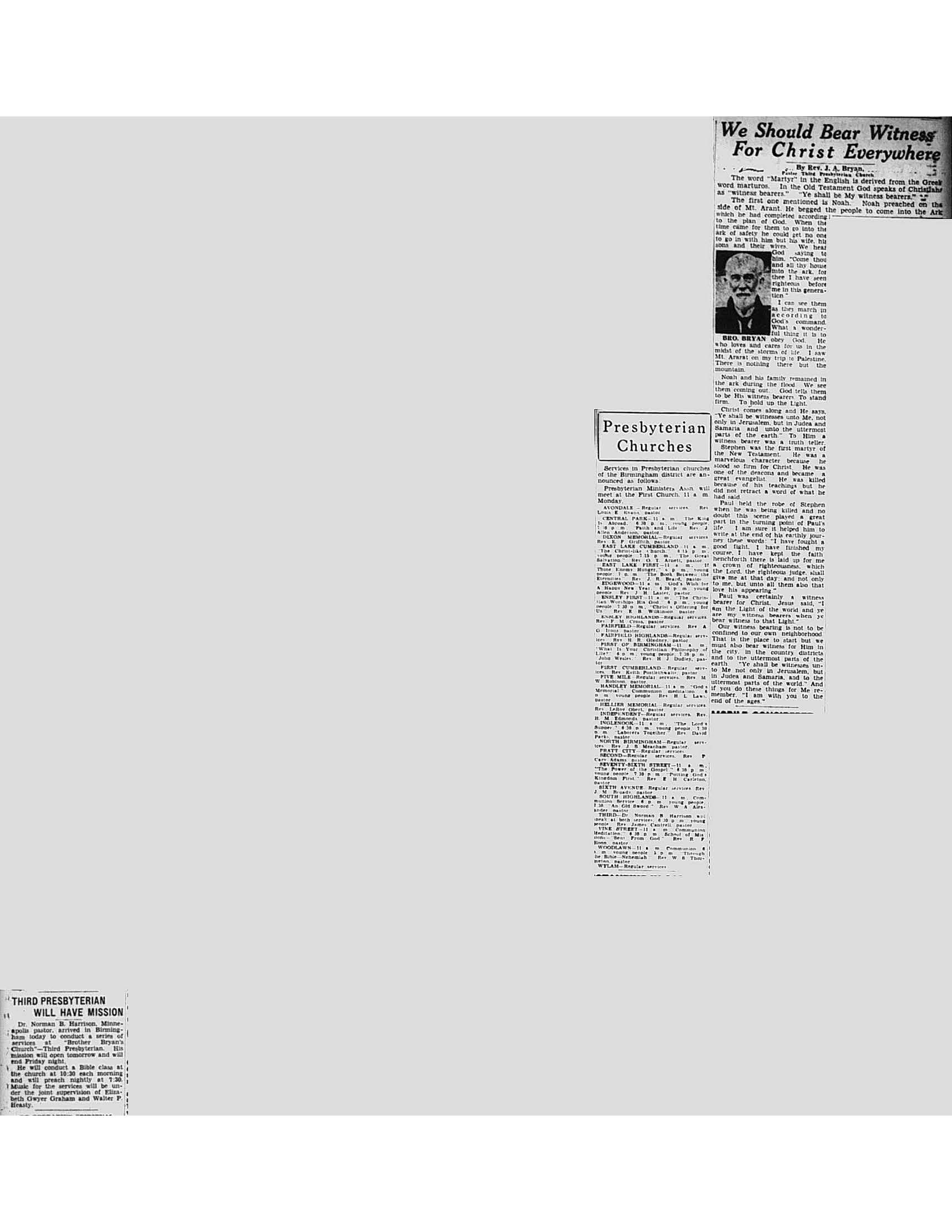 Birmingham Post-Herald | January 11, 1941 We Should Bear Witness For Christ Everywhere Notes: