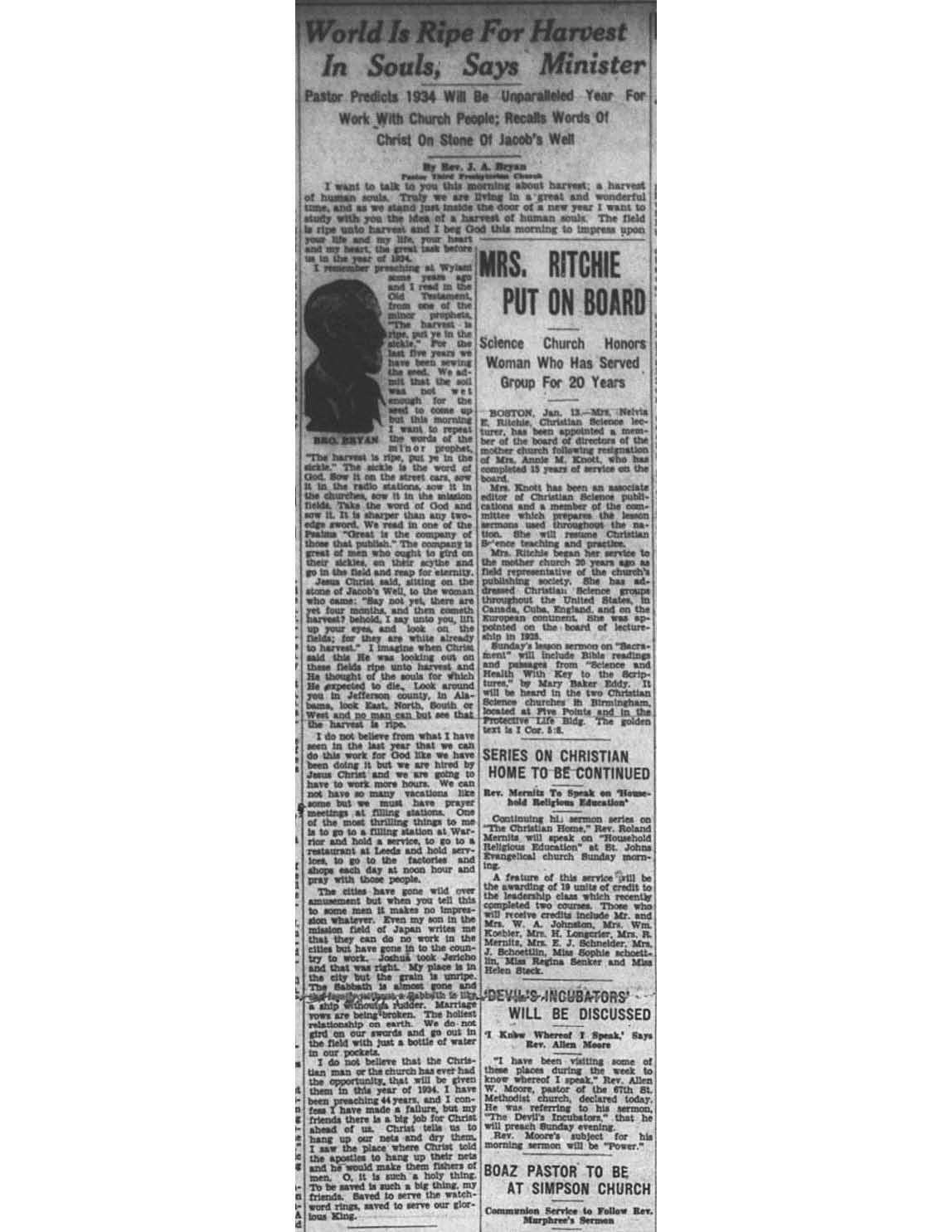 Birmingham Post-Herald | January 13, 1934 World Is Ripe For Harvest In Souls