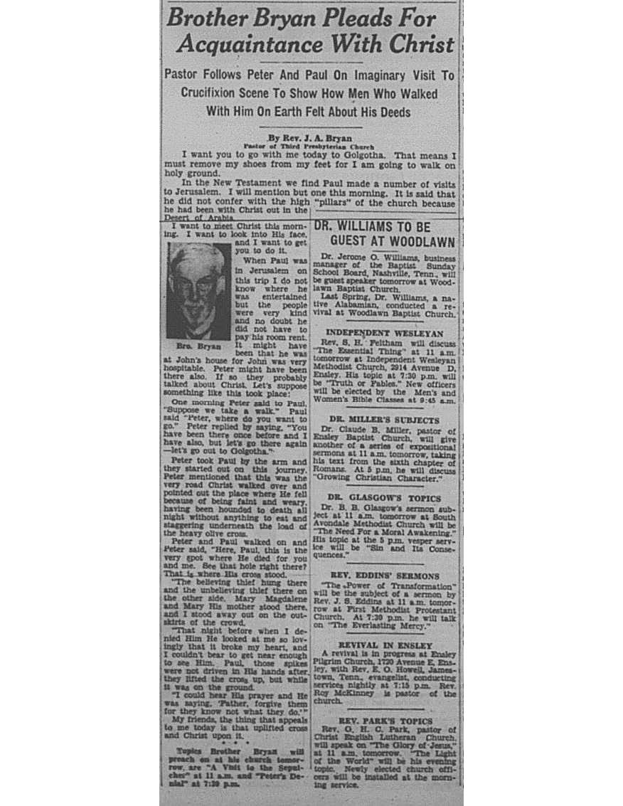 Birmingham Post-Herald | January 18, 1936 Brother Bryan Pleads For Acquaintance With Christ Notes: