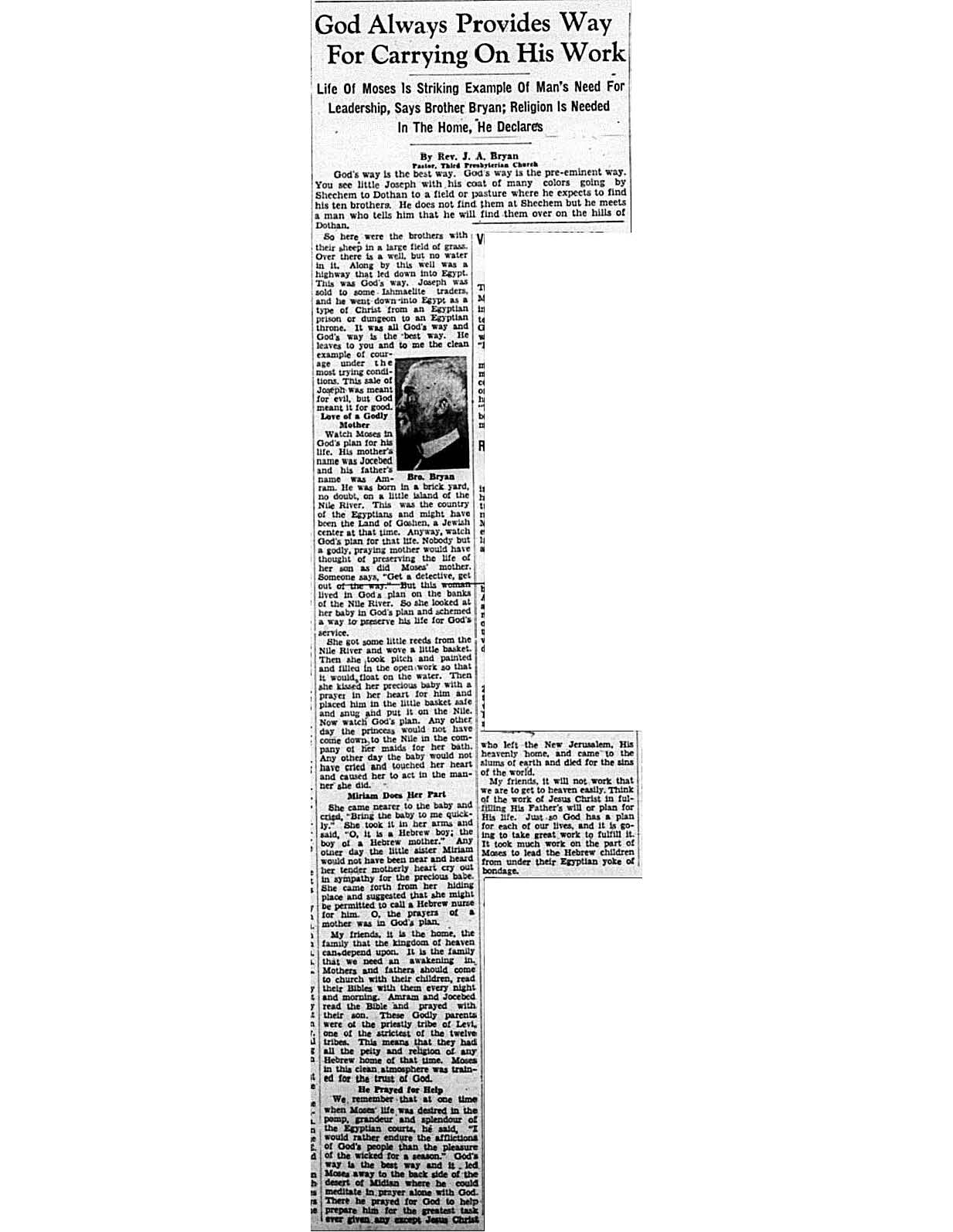 Birmingham Post-Herald | July 10, 1937 God Always Provides Way For Carrying on His Work Notes: