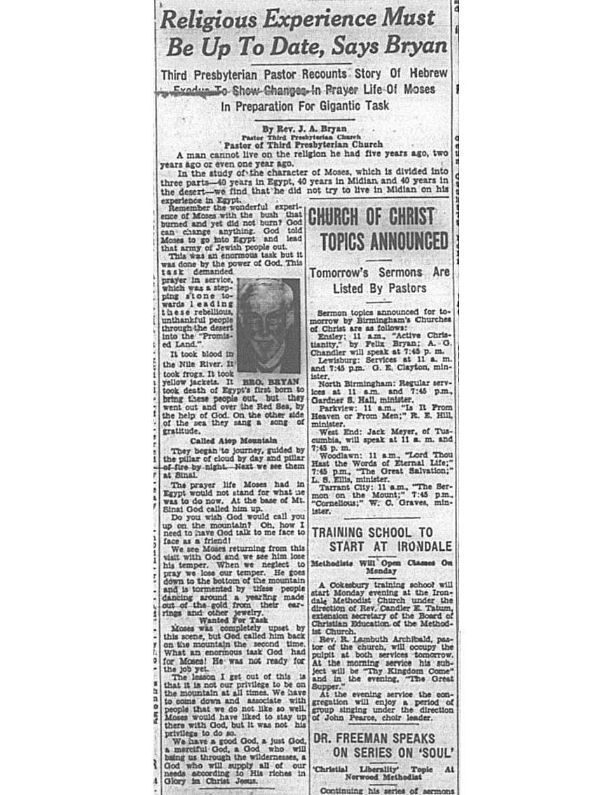 Birmingham Post-Herald | July 13, 1935 Religious Experience Must Be Up To Date Notes: