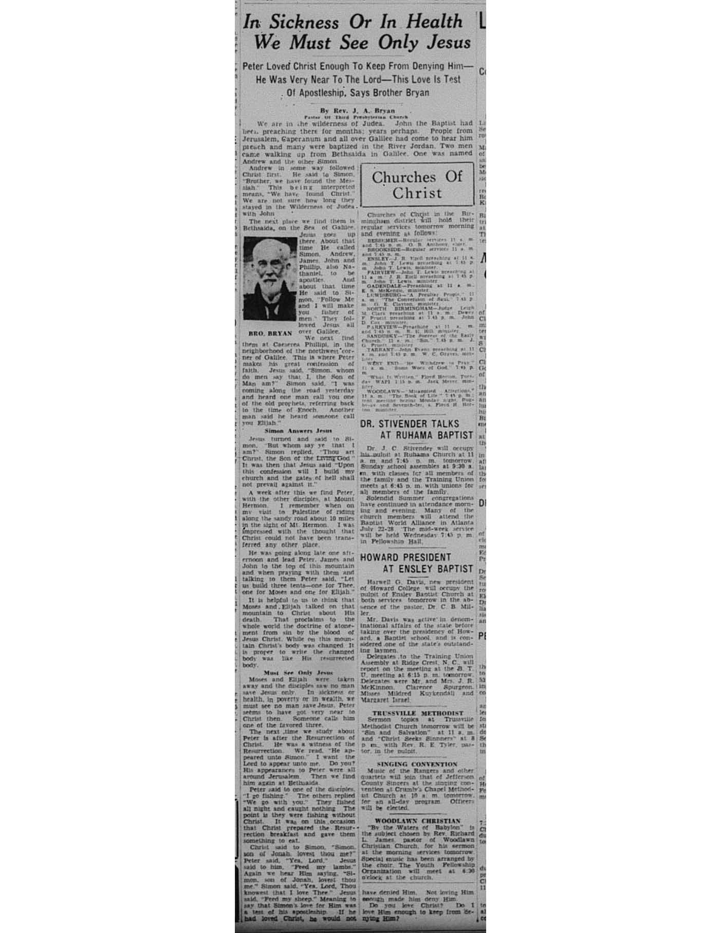 Birmingham Post-Herald | July 22, 1939 In Sickness Or In Health We Must See Only Jesus