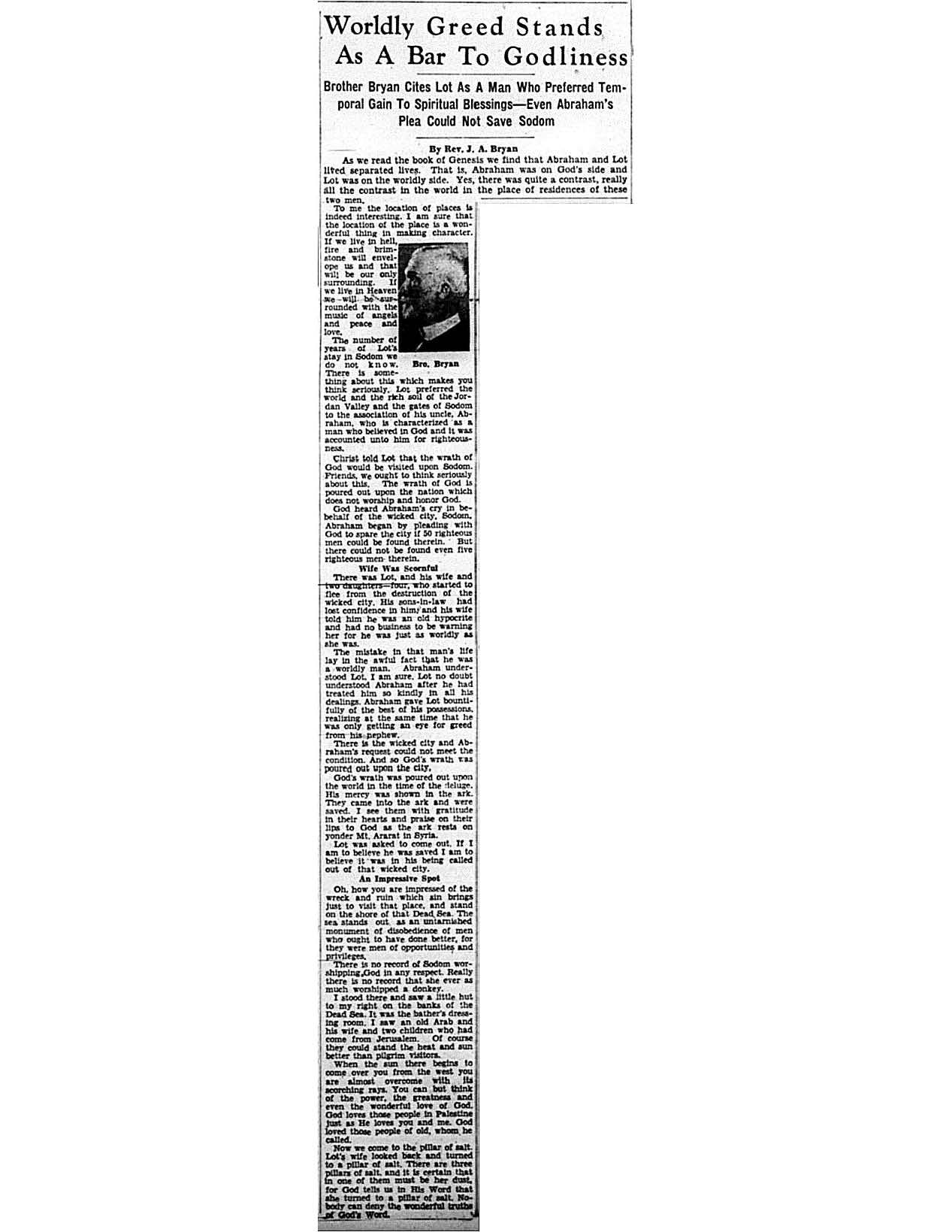 Birmingham Post-Herald | July 24, 1937 Worldly Greed Stands As A Bar To Godliness Notes: