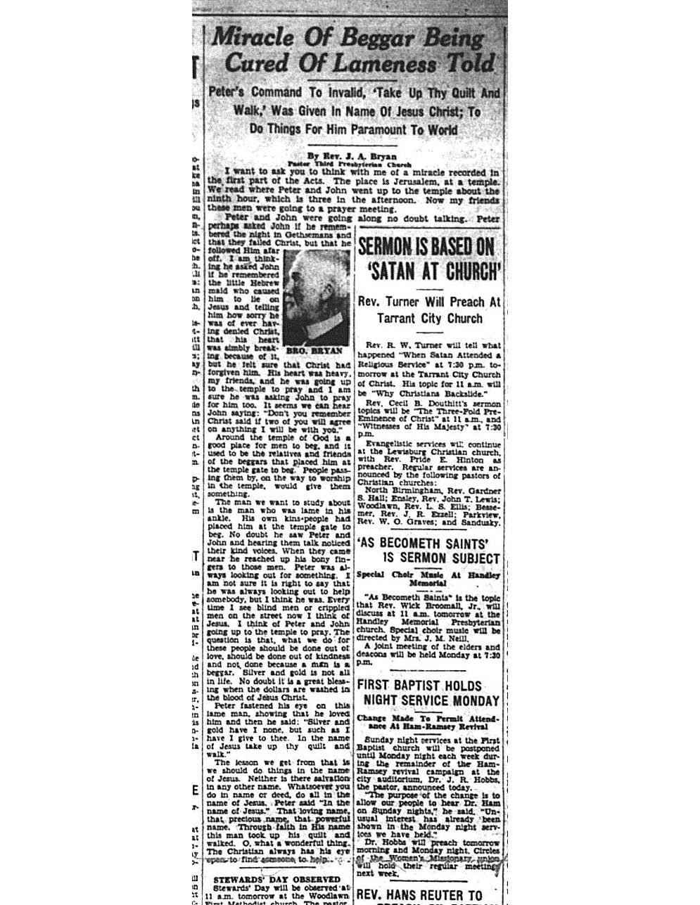 Birmingham Post-Herald | July 7, 1934 Miracle of Beggar Being Cured of Lameness Told Notes: