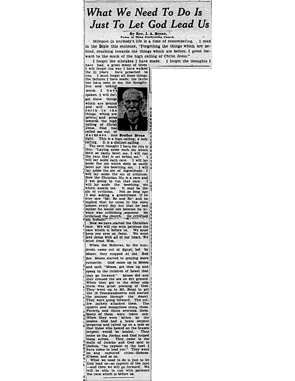Birmingham Post-Herald | June 15, 1940 What We Need To Do Is Let God Lead Us Notes: