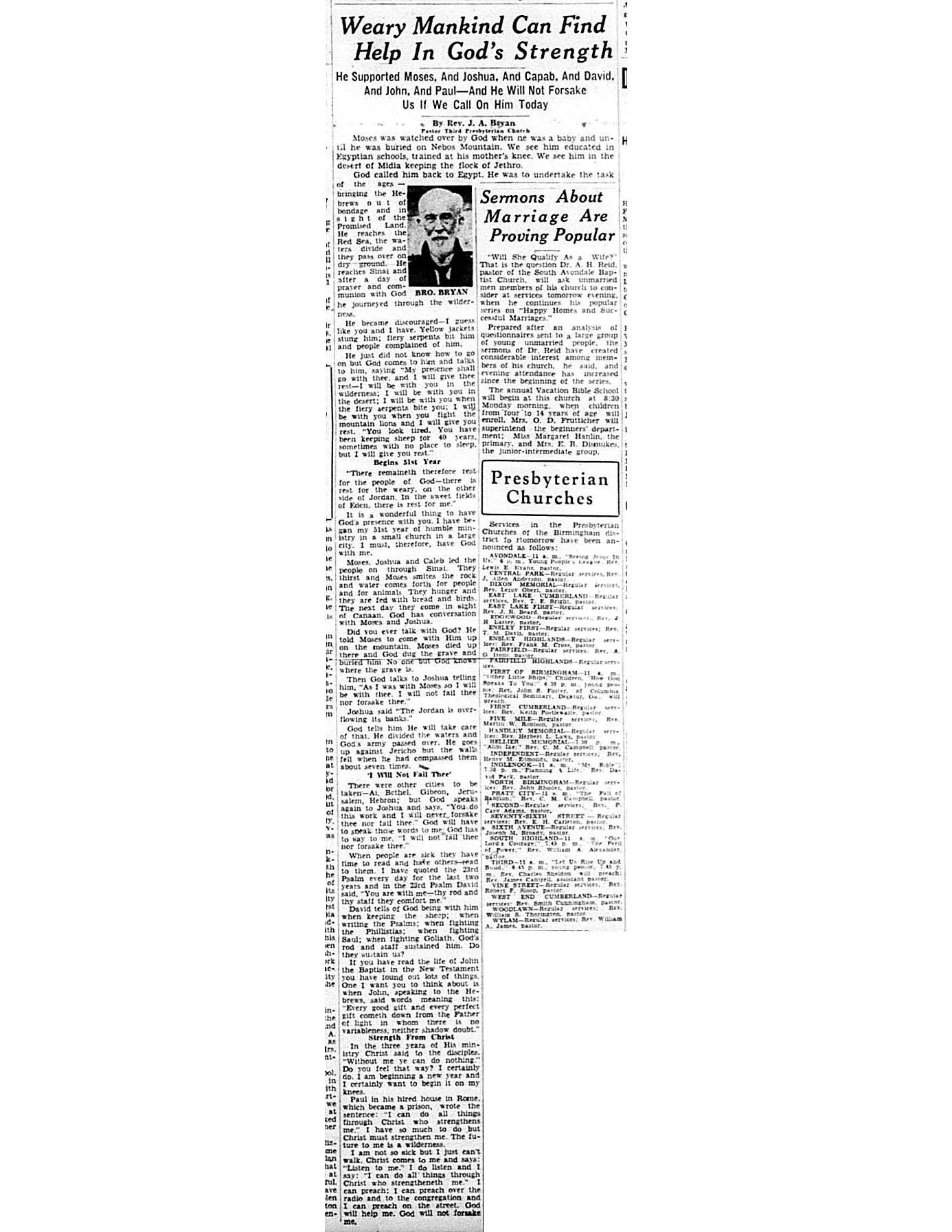Birmingham Post-Herald | June 17, 1939 Weary Mankind Can Find Help In God’s Strength Notes: