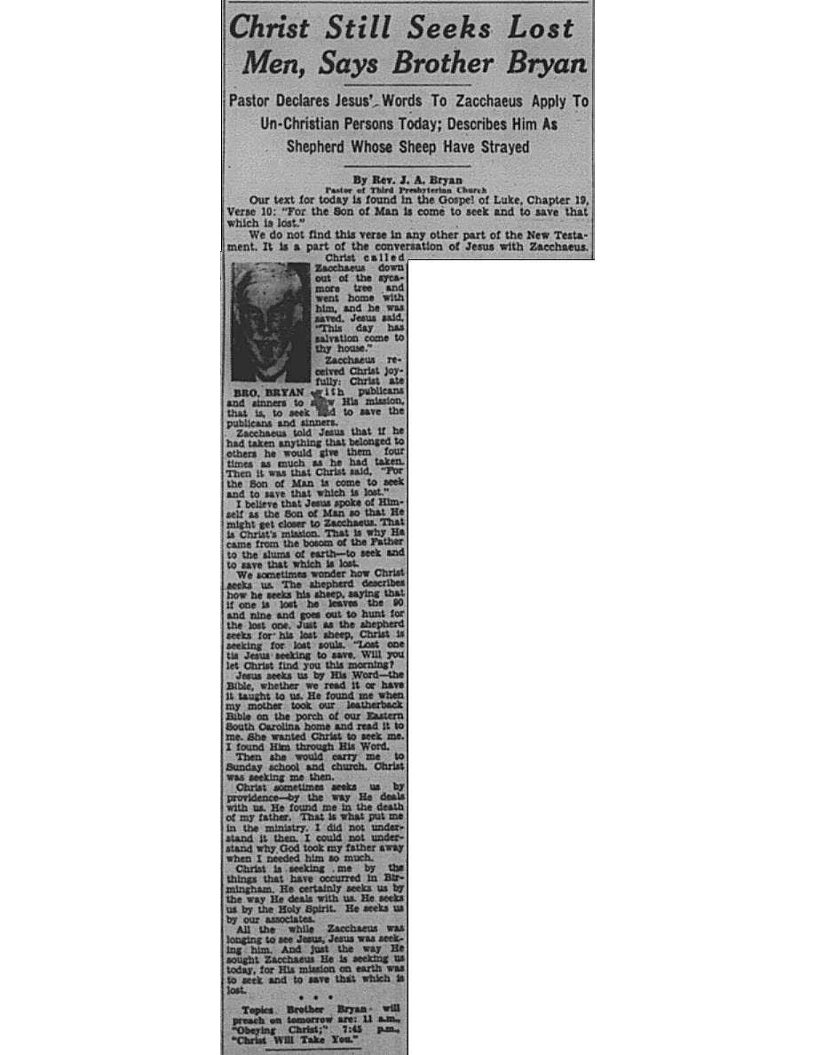 Birmingham Post-Herald | June 20, 1936 Christ Still Seeks Lost Men