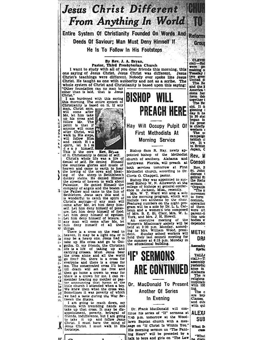 Birmingham Post-Herald | June 23, 1934 Jesus Christ Different From Anything In World Notes: