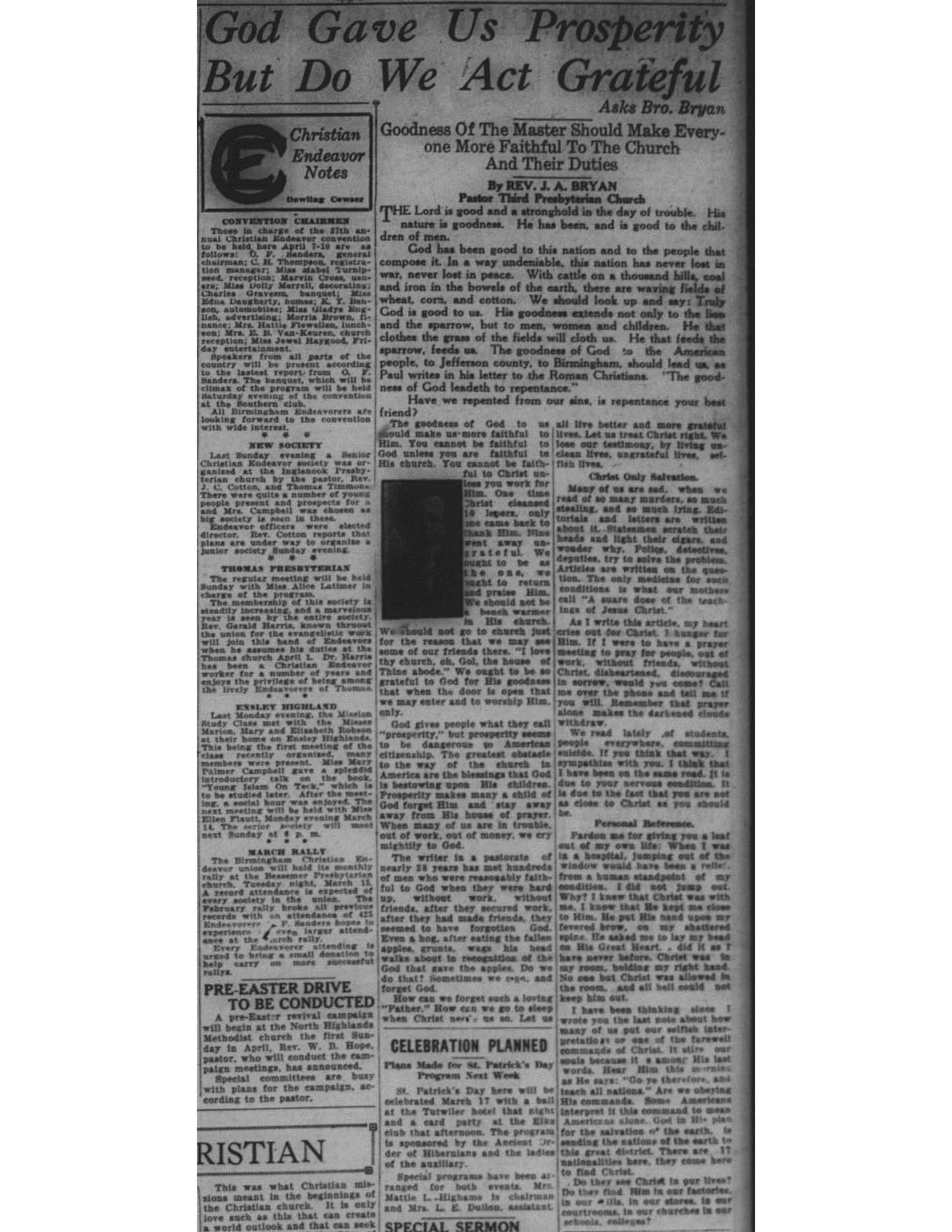 Birmingham Post-Herald | March 12, 1927 God Gave Us Prosperity Notes: