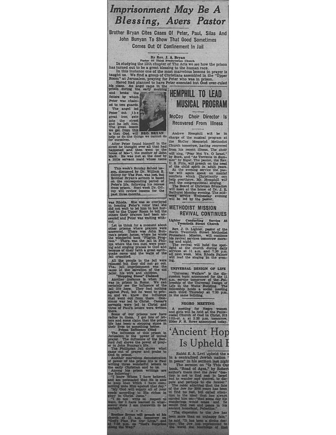 Birmingham Post-Herald | March 23, 1935 Imprisonment May Be a Blessing Notes:
