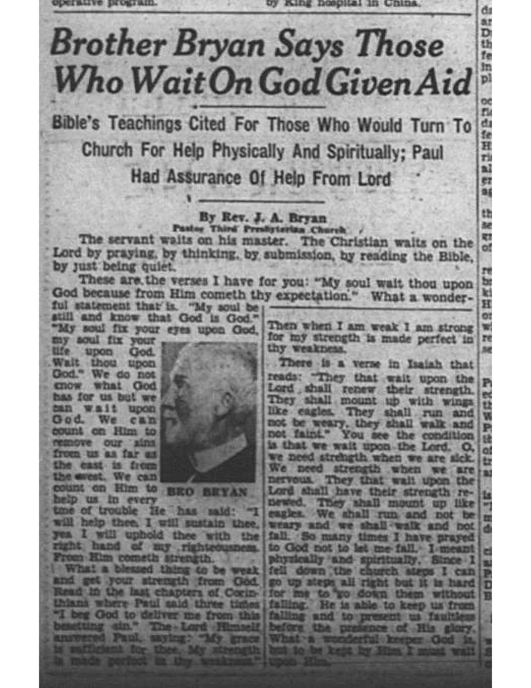 Birmingham Post-Herald | March 24, 1934 Brother Bryan Says Those Who Wait On God Given Aid