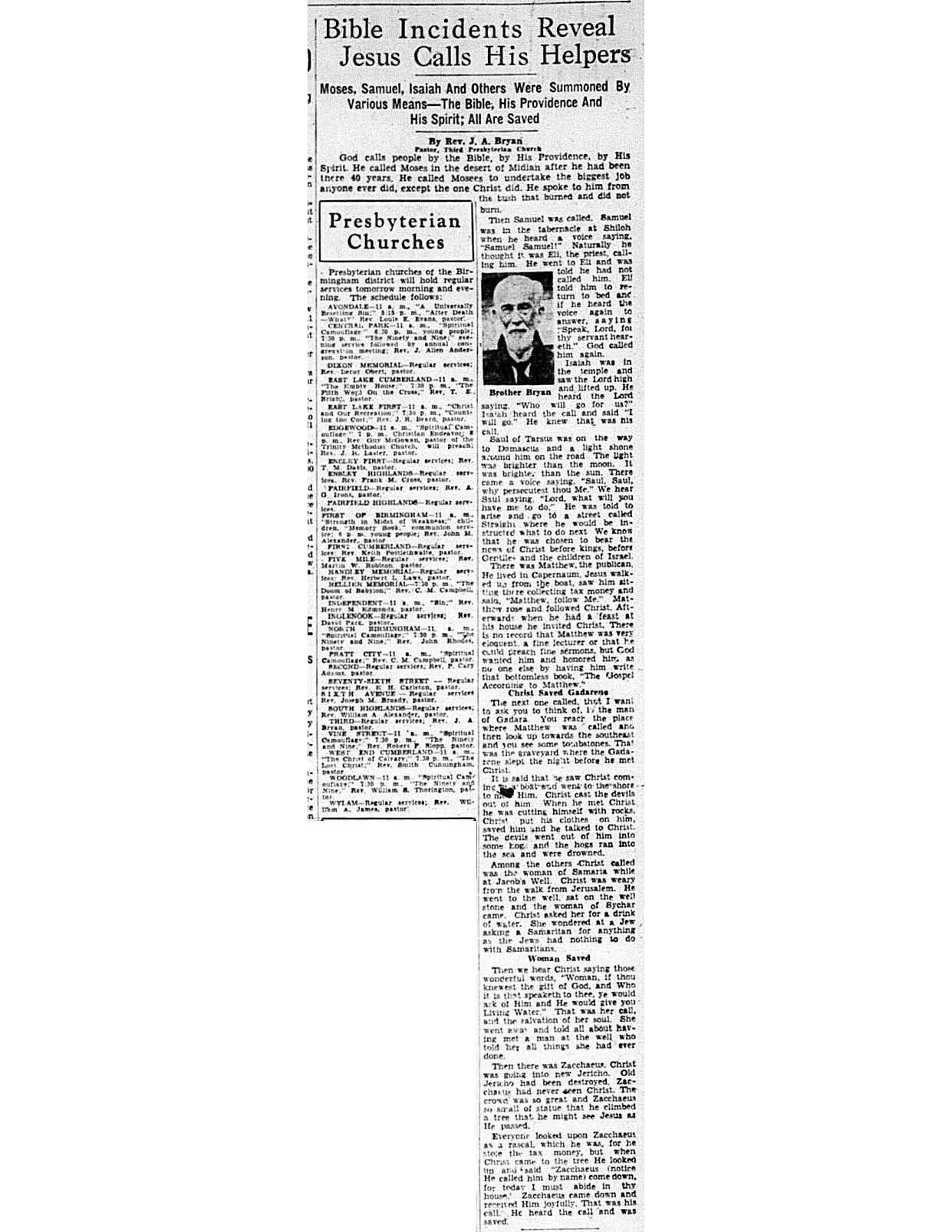 Birmingham Post-Herald | March 25, 1939 Bible Incidents Reveal Jesus Calls His Helpers