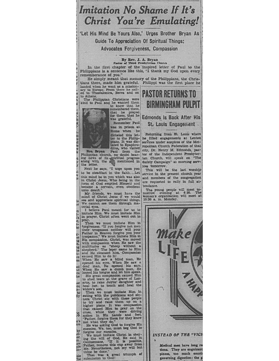 Birmingham Post-Herald | March 28, 1936 Imitation No Shame If It’s Christ You’re Emulating! Notes: