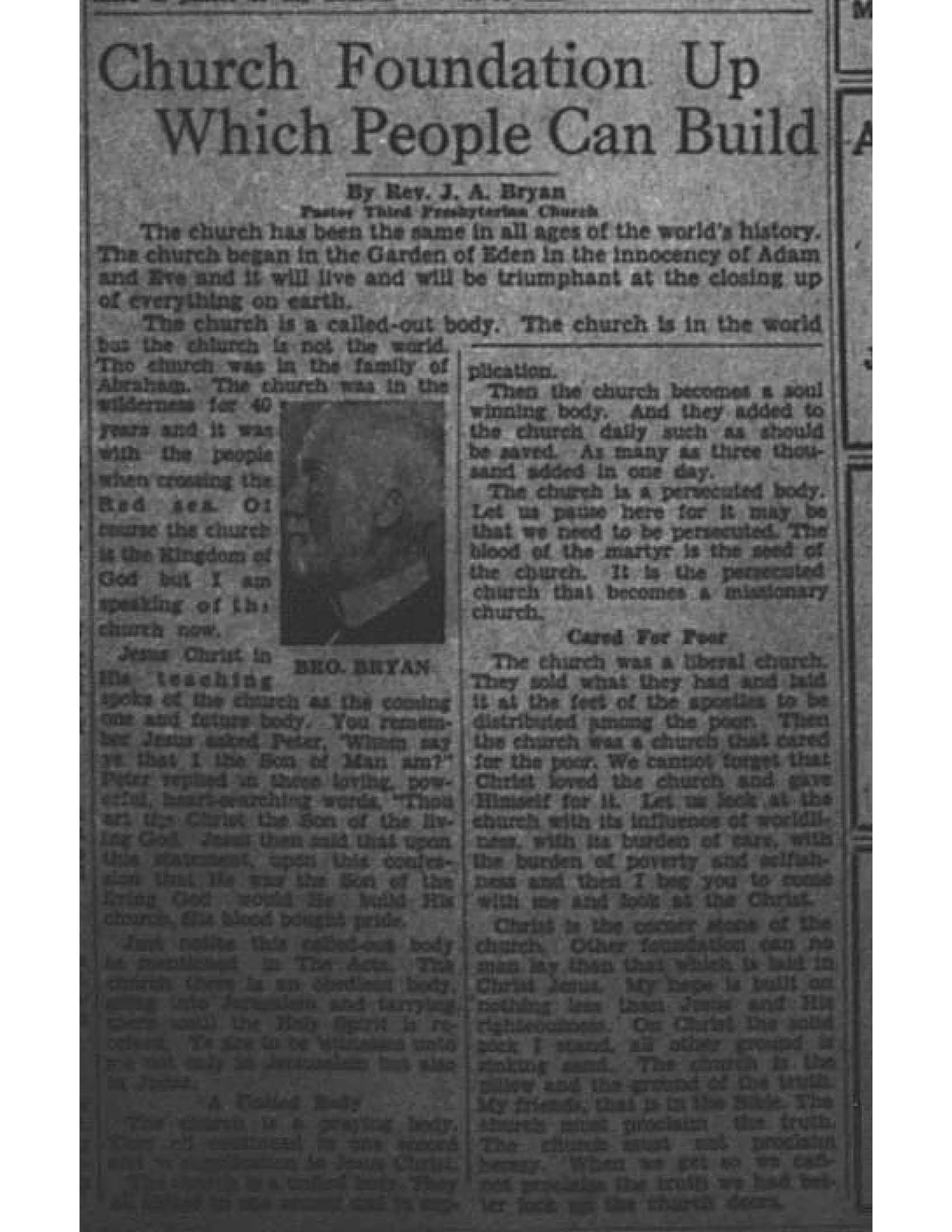 Birmingham Post-Herald | March 3, 1934 Church Foundation Up Which People Can Build Notes: