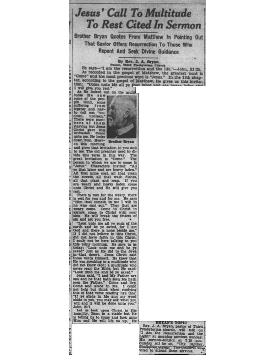Birmingham Post-Herald | March 31, 1934 Jesus’ Call To Multitude To Rest