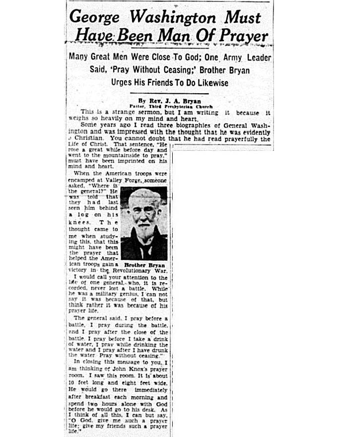 Birmingham Post-Herald | March 4, 1939 George Washington Must Have Been A Man of Prayer Notes: