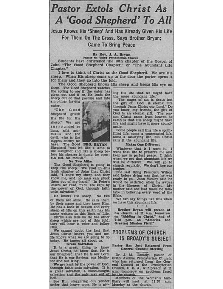 Birmingham Post-Herald | March 9, 1935 Pastor Extols Christ As A ‘Good Shepherd’ To All Notes: