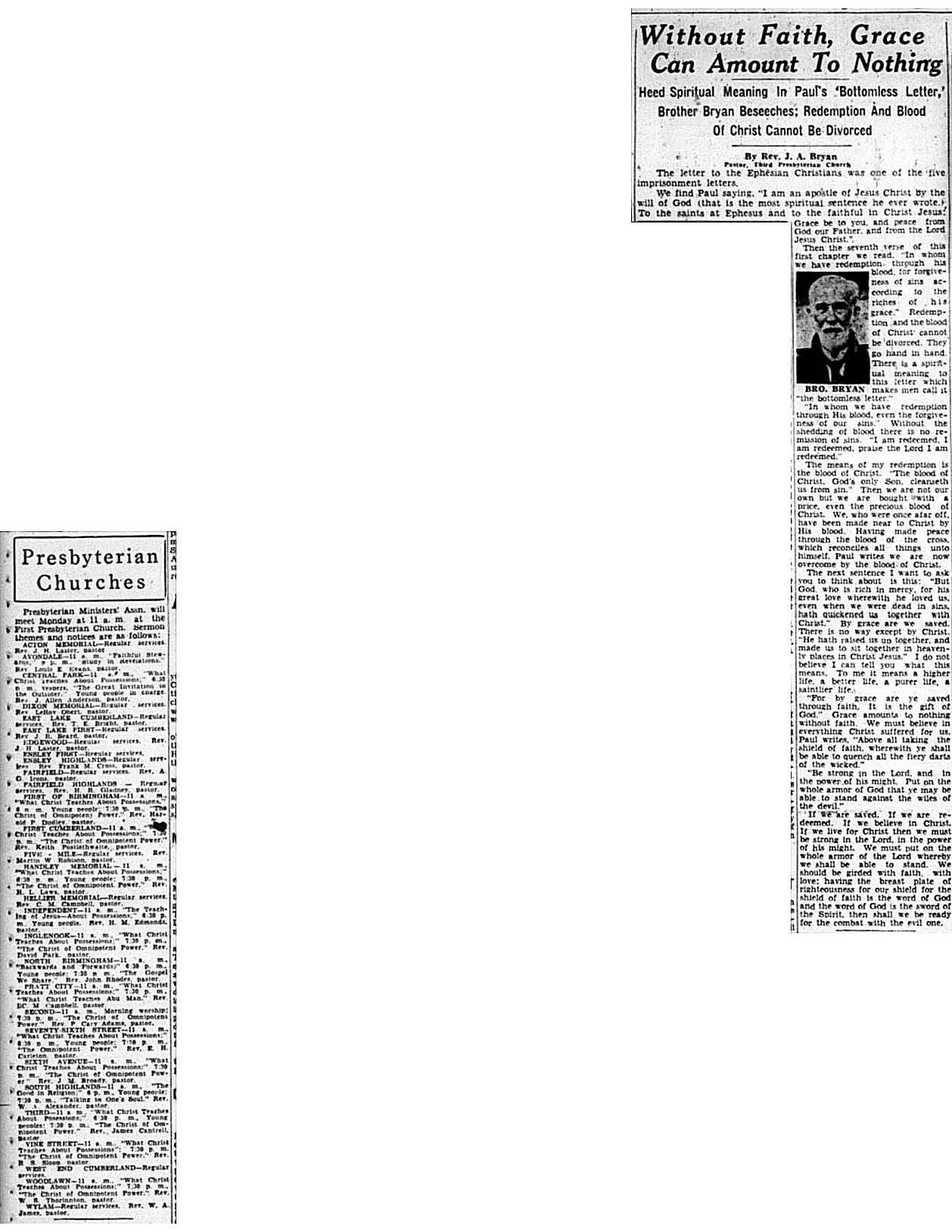 Birmingham Post-Herald | March 9, 1940 “Whitout Faith, Grace Can Amount To Nothing” Notes: