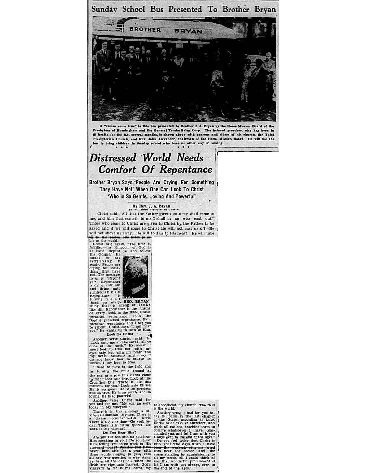 Birmingham Post-Herald | May 21, 1938 Distressed World Needs Comfort of Repentance