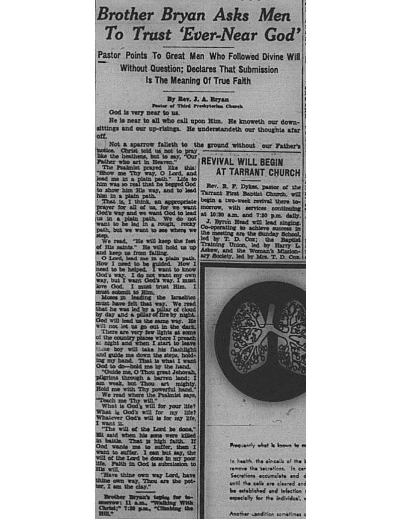 Birmingham Post-Herald | May 23, 1936 Brother Bryan Asks Men To Trust ‘Ever-Near God’