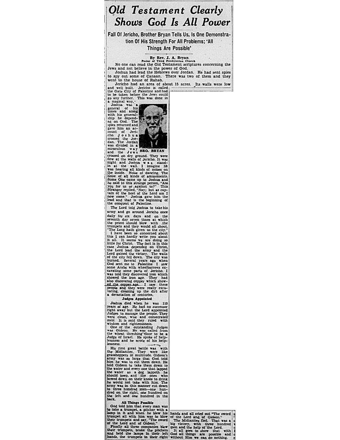 Birmingham Post-Herald | May 28, 1938 Old Testament Clearly Shows God Is All Power Notes: