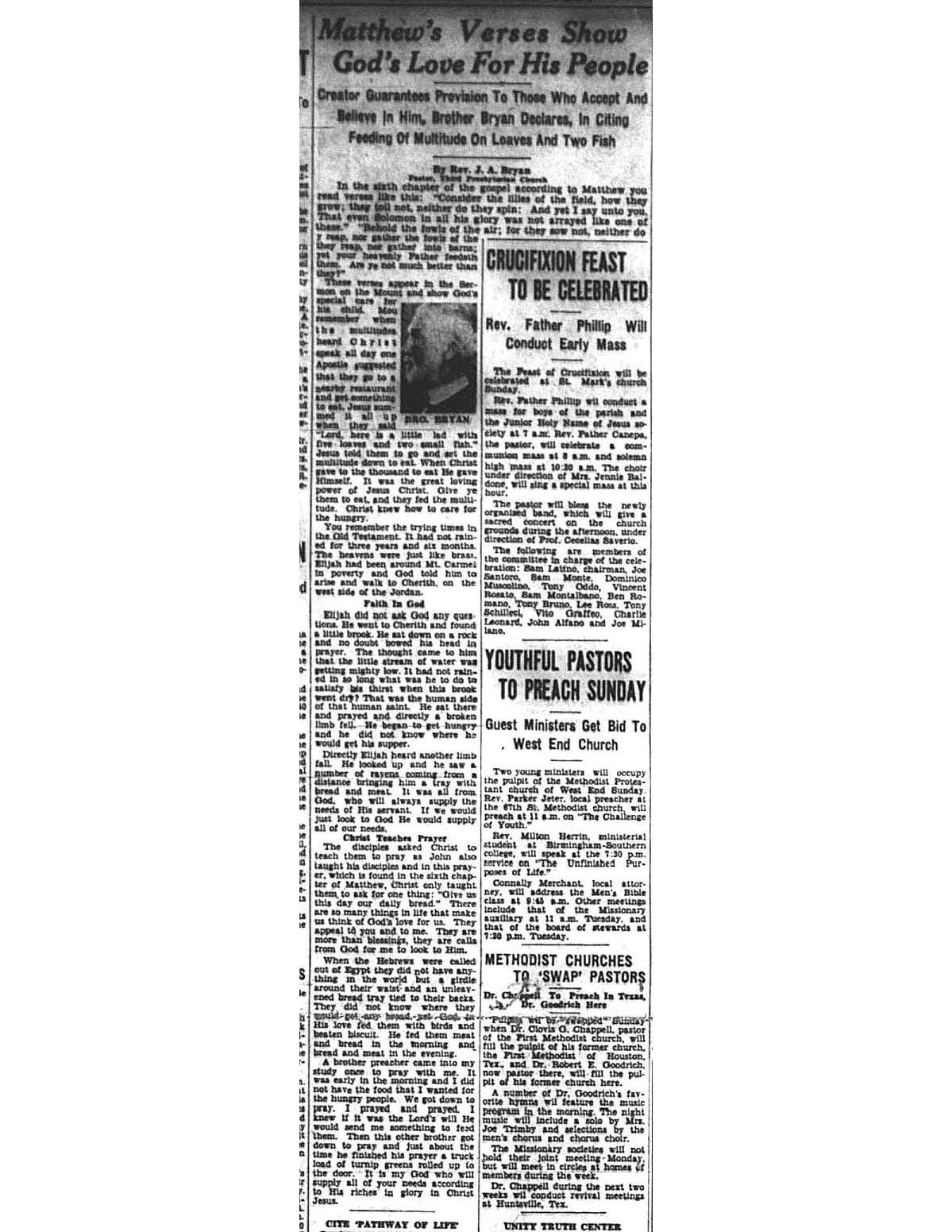 Birmingham Post-Herald | May 5, 1934 Matthew’s Verses Show God’s Love For His People Notes: