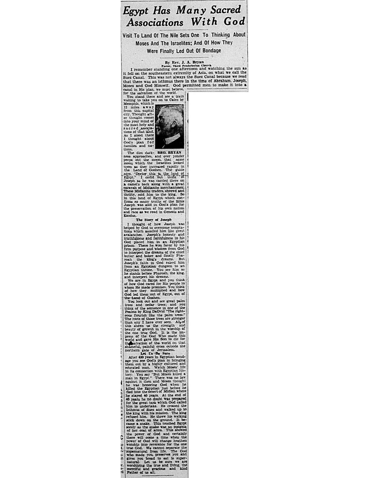 Birmingham Post-Herald | May 8, 1937 Egypt Has Many Sacred Associations With God Notes: Holy Land Reflection