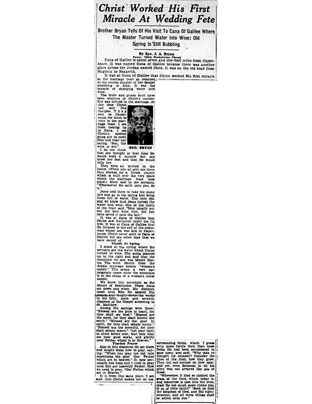 Birmingham Post-Herald | November 12, 1938 Christ Worked His First Miracle At Wedding Fete Notes: VIsit Cana