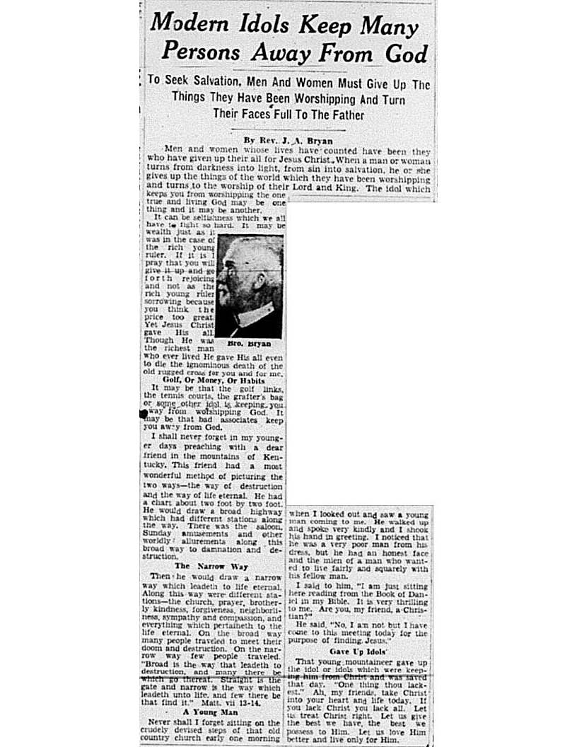 Birmingham Post-Herald | November 13, 1937 Modern Idols Keep Many Persons Away From God Notes: